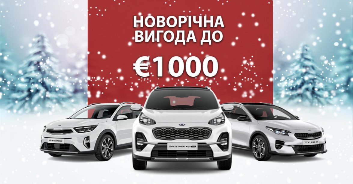 Якщо Ви відкладали придбання автомобіля Kia, очікуючи привабливої новорічної пропозиції, то саме для Вас у період з 01.12.2020 до 31.01.2021 у всій дилерській мережі ТОВ «ФАЛЬКОН-АВТО» є чудова можливість стати власником однієї з найпопулярніших моделей Kia - Kia Sportage, Kia Stonic або Kia XCeed з вигодою** до 1000 Євро.