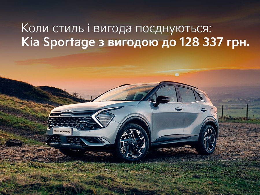 2Акційна ціна - орієнтовна рекомендована роздрібна ціна на визначені автомобілі з урахуванням знижки. Акційні ціни на автомобілі 2024 та 2025 року виробництва діють з 23 липня 2025 року на обмежену кількість зазначеної моделі Kia Sportage у комплектації Prestige 2024-2025 року виробництва, що є в наявності в дилерській мережі ТОВ «ФАЛЬКОН-АВТО» на всій території України, за винятком АР Крим і тимчасово окупованих територій, до повного розпродажу складу акційних авто.
