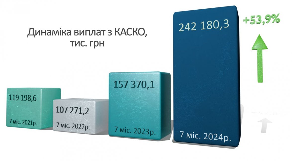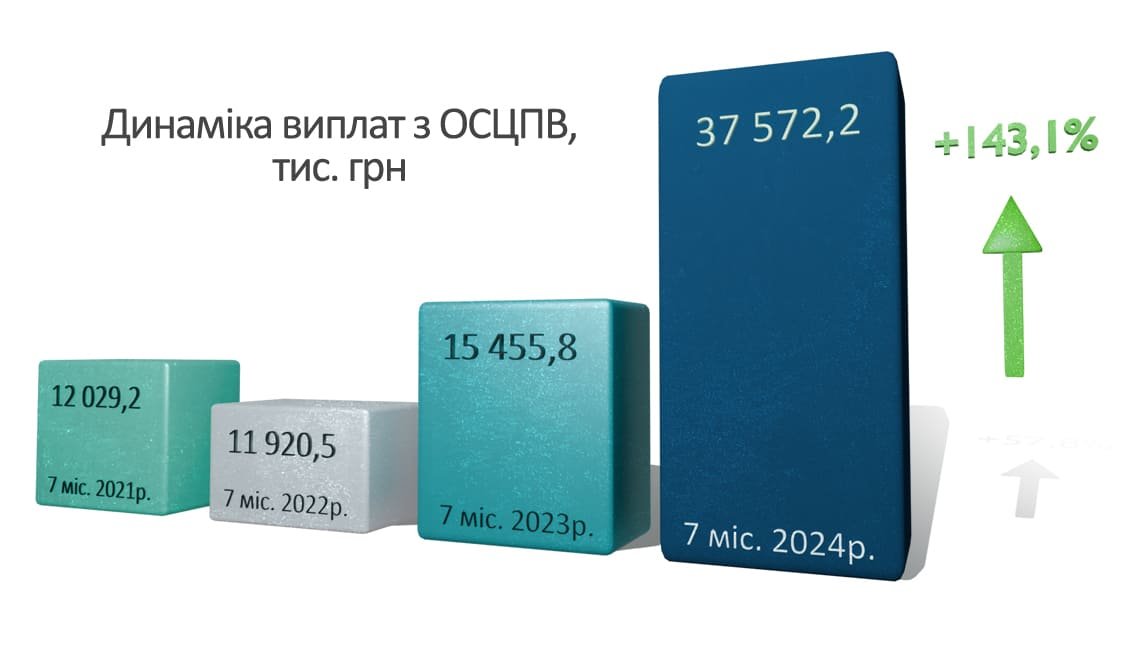 У липні 2024 року виплати клієнтам загалом склали 43,8 млн грн, що на 47% більше, ніж у липні 2023 року. Зокрема, за договорами КАСКО компанія виплатила 36 млн грн (+35%), з ОСЦПВ – 6 млн грн (+175,2%).