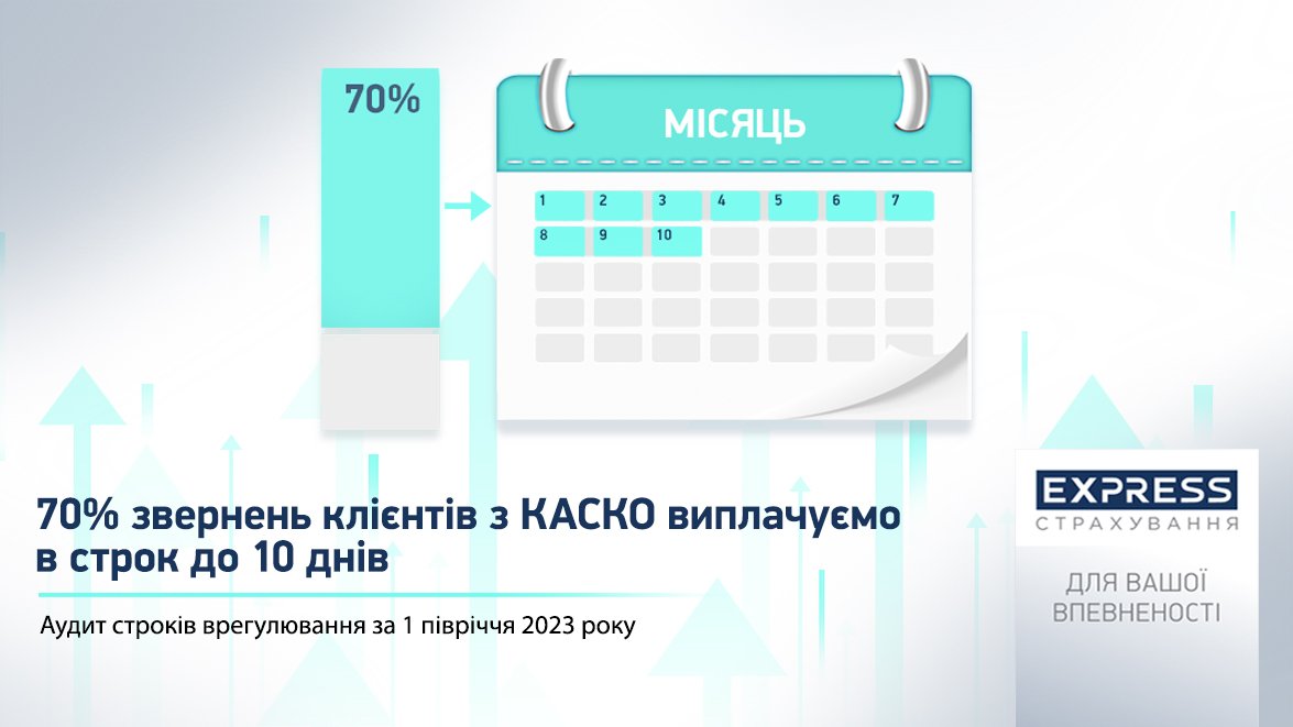 СК «Експрес Страхування», що входить до сім’ї групи компаній УкрАВТО, провела черговий аудит строків врегулювання та виплат клієнтам за 6 місяців 2023 року за подіями з КАСКО та ОСЦПВ.