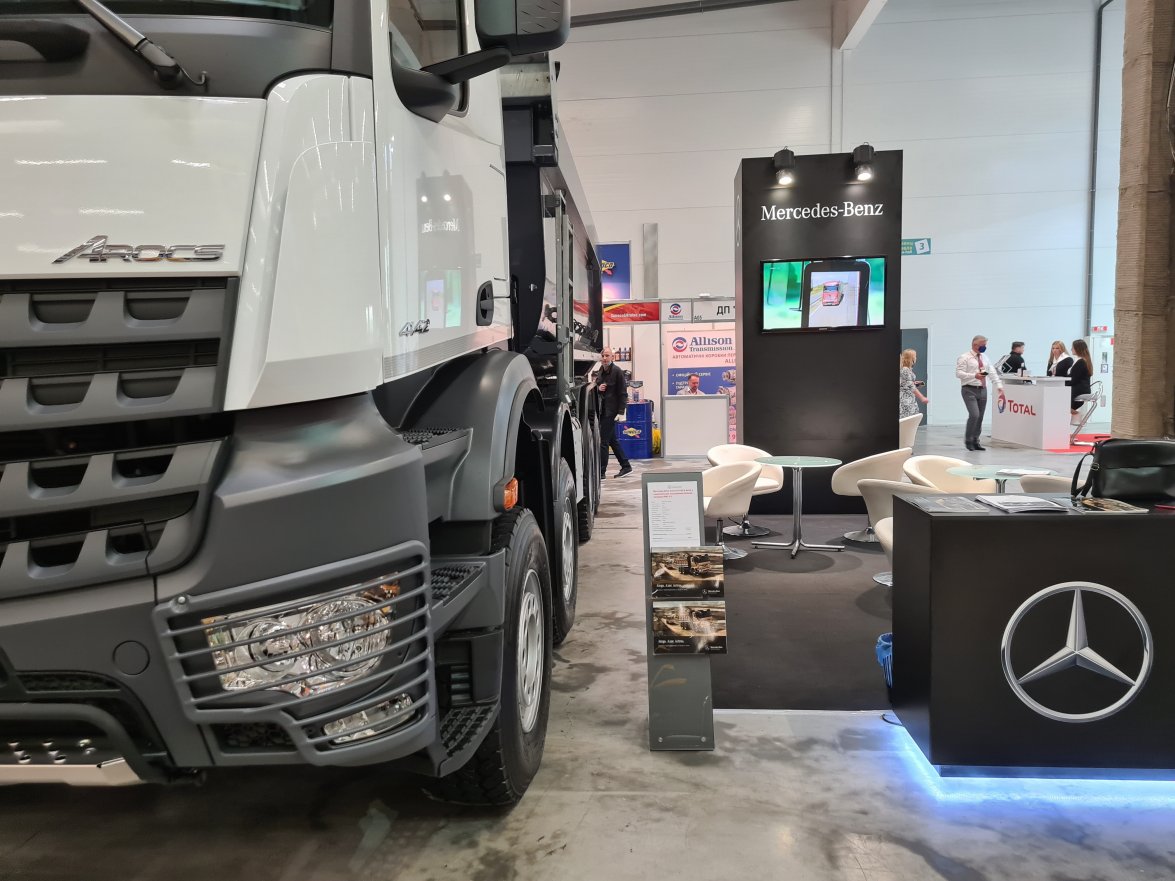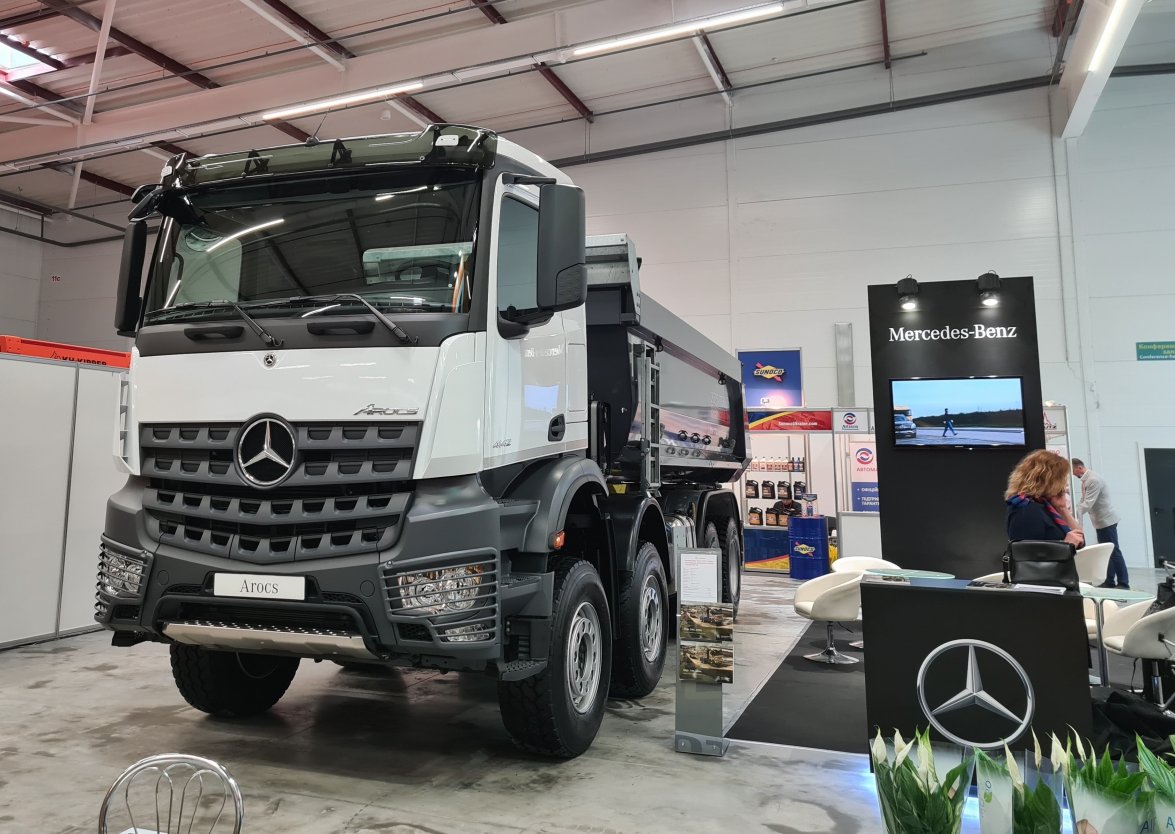 В рамках салонної експозиції вантажний підрозділ Mercedes-Benz в Україні представив одного з найбільш затребуваних представників лінійки будівельної техніки – самоскид на шасі Mercedes-Benz Arocs 4142 (8х4) з кузовом Schmitz Cargobull. Спеціальна вантажна техніка Mercedes-Benz, оснащена кузовними надбудовами, широко застосовується в будівельній і видобувній галузях України. Спецтехніка для будівництва на шасі Mercedes-Benz виготовляється у співпраці з провідними світовими виробниками спеціального обладнання.