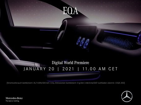 Компанія «АвтоКапітал», генеральне представництво Mercedes-Benz в Україні (Корпорація УкрАВТО), повідомляє: світова прем'єра нового EQA відбудеться 20 січня о 12:00 на онлайн-платформі Mercedes me media.