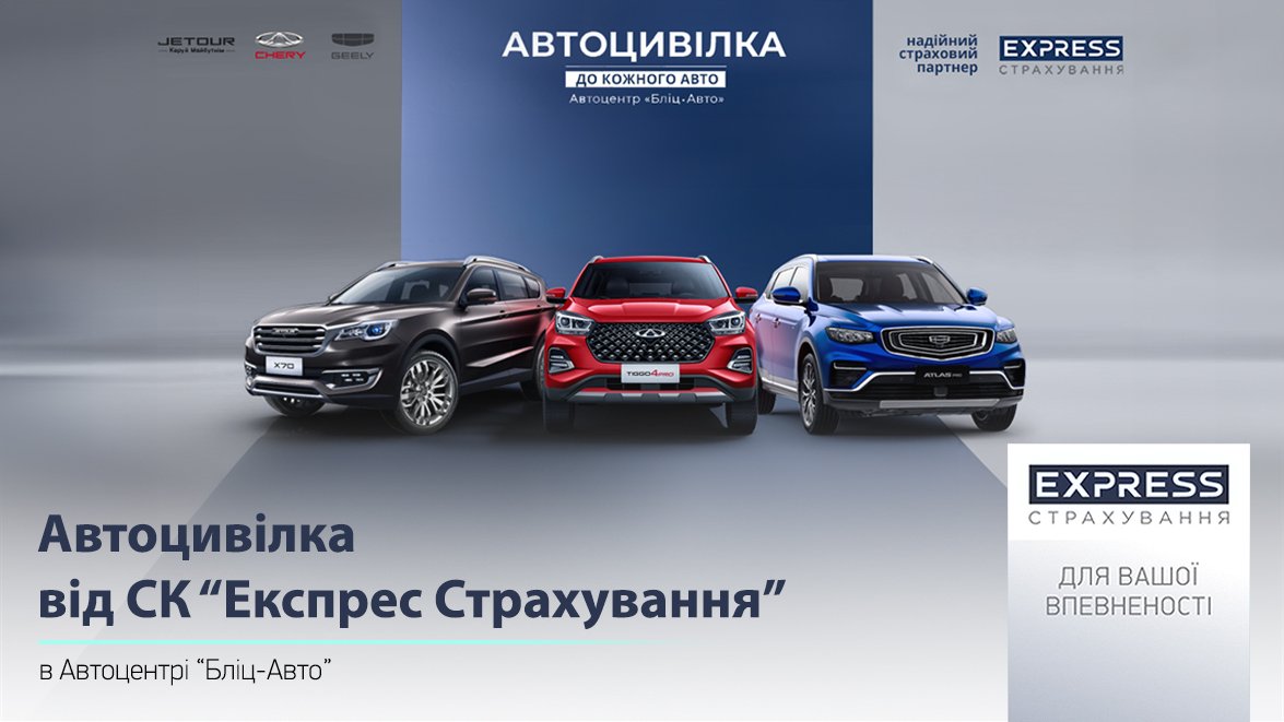 СК «Експрес Страхування» та автосервісний центр «Бліц-АВТО», що входять до сім’ї компаній групи УкрАВТО, розпочинають спільну акцію «Автоцивілка в подарунок до кожного авто» для клієнтів, які придбають автомобіль брендів Chery, Jetour або Geely.