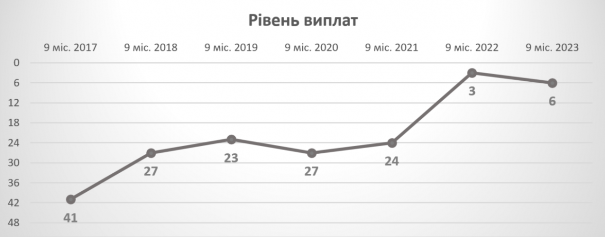 Важливо відзначити, що зростання продажів безумовно супроводжується стабільними виплатами – тому за показником «рівень виплат» Компанія також увійшла в ТОП-10, посівши 6-е місце.