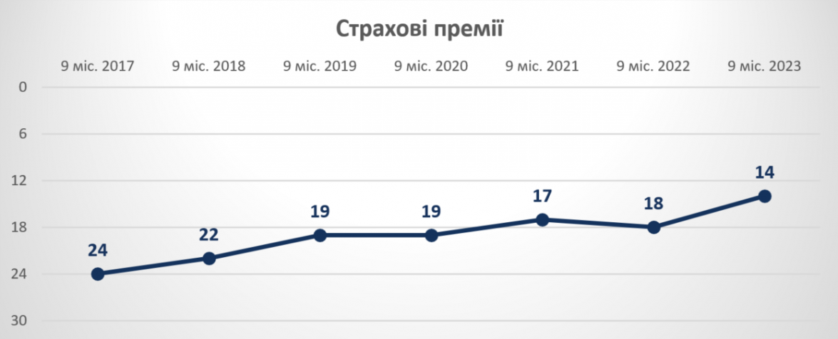 Зауважимо, що за даними Національного банку України, кількість страхових компаній, які працювали на ринку ризикового страхування станом на 30.09.23 становила 99 СК. За рік кількість страховиків, які працюють на ринку non-life скоротилась на 27 компаній.