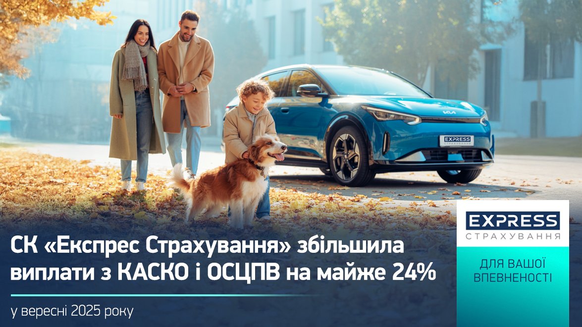 У вересні 2025 року СК «Експрес Страхування», що входить до УКРАВТО ГРУП, збільшила виплати клієнтам за договорами КАСКО та ОСЦПВ на 23,5% порівняно з серпнем ц.р. – до 53,8 млн грн.
