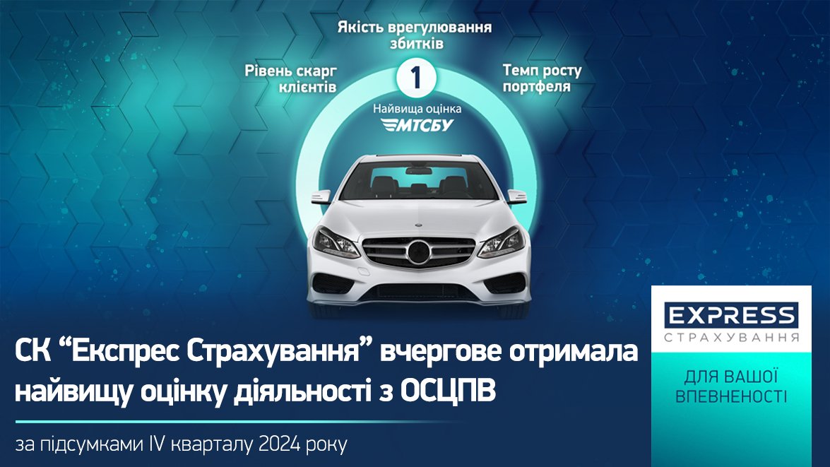 СК «Експрес Страхування», що входить до УКРАВТО ГРУП, отримала найвищу загальну оцінку («1») діяльності з обов’язкового страхування цивільно-правової відповідальності автовласників (ОСЦПВ) за підсумками IV кварталу 2024 року. Дані оприлюднені на офіційному сайті МТСБУ.