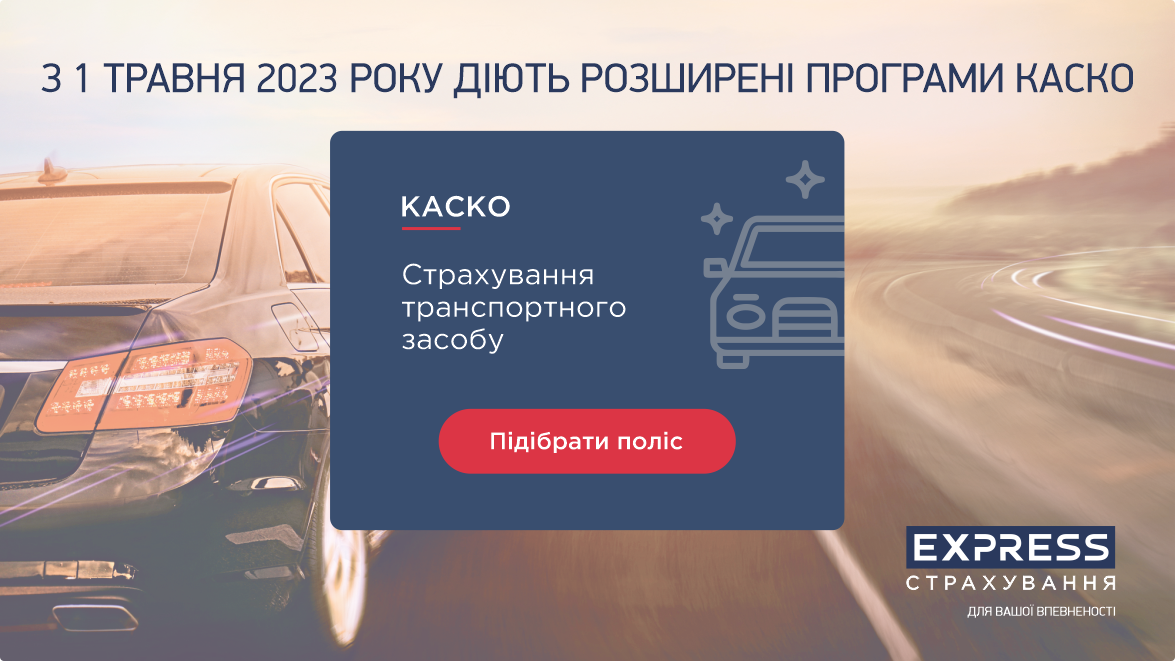 СК «Експрес Страхування», що входить до сім’ї компаній групи УкрАВТО, внесла зміни до 3-х програм страхування КАСКО, які покликані забезпечити підвищений рівень захисту клієнтів Компанії у разі настання страхових випадків. Крім того до двох програм додані нові опції покриття додаткових витрат, які дозволять клієнтам оцінити новий рівень сервісу Компанії. Зміни вступають в дію з 1 травня 2023 року й діють для нових договорів КАСКО.