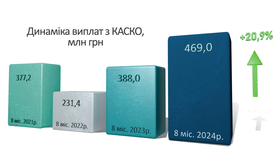 У серпні 2024 року Компанія залучила 92,1 млн грн страхових премій, що на 44,3% більше, ніж у серпні минулого року. В тому числі, премії з КАСКО становили 74 млн грн (+35,9%), з ОСЦПВ – 16,6 млн грн (+105,2%).