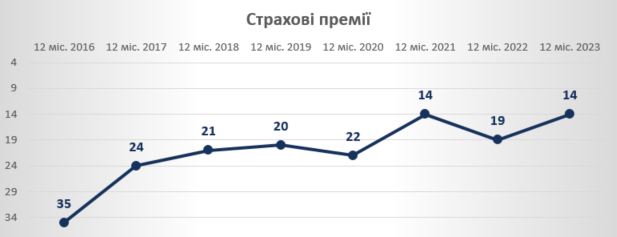 Зауважимо, що за даними Національного банку України, кількість страхових компаній, які працювали на ринку ризикового страхування станом на 30.12.23 становила 89 СК. За рік кількість страховиків, які працюють на ринку non-life скоротилась на 27 компаній.