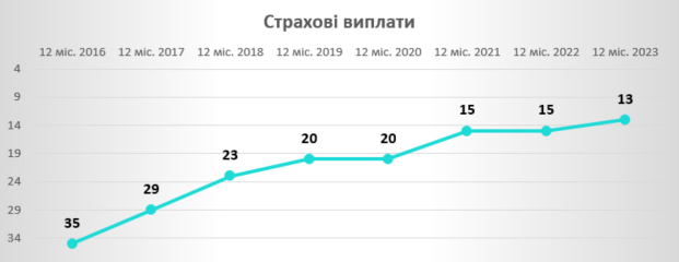 Виплати з КАСКО збільшились на 38,3% та склали 284,4 млн грн. Такий результат відобразився й на рейтингу по страховим виплатам Компанії в цілому: +2 пункти й 13-та сходинка за результатами 12 місяців 2023 року.