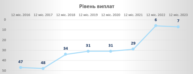 Важливо відзначити, що зростання продажів безумовно супроводжується стабільними виплатами – тому за показником «рівень виплат» Компанія також увійшла в ТОП-10, посівши 7-е місце.