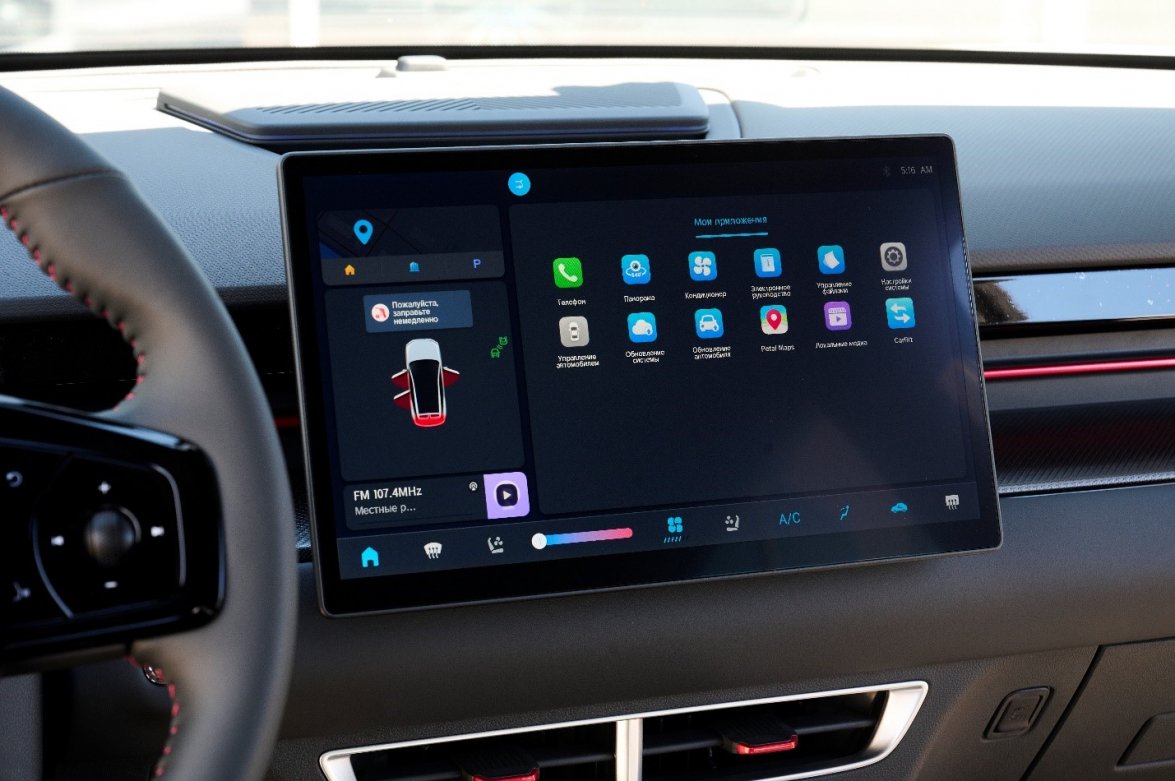 Електронний важіль перемикання передач та функція бездротової зарядки додають зручності, а кольоровий сенсорний дисплей мультимедійної системи на 12,8 дюймів дозволяє водію швидко з ним взаємодіяти та легко зчитувати інформацію завдяки встановленому процесору Qualcomm 3-го покоління.