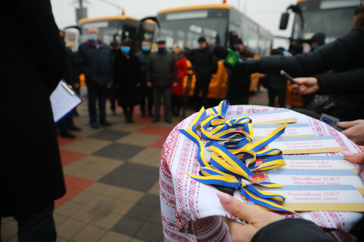 Нові шкільні автобуси отримали Біленьківська, Долинська та Широківська громади Запорізького району, Коларівська ОТГ Бердянського району, Якимівська ОТГ Якимівського району та Веселівська районна рада Запорізької області.